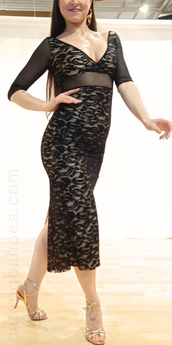 Io mi chiamo "Leonia 10" sono un abito a tubino realizzato in pizzo nero con fodera nudo.