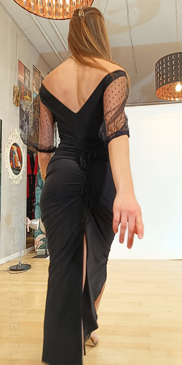 Abito realizzato in jersey elasticizzato nero e tulle a pois nelle maniche - Additional Information