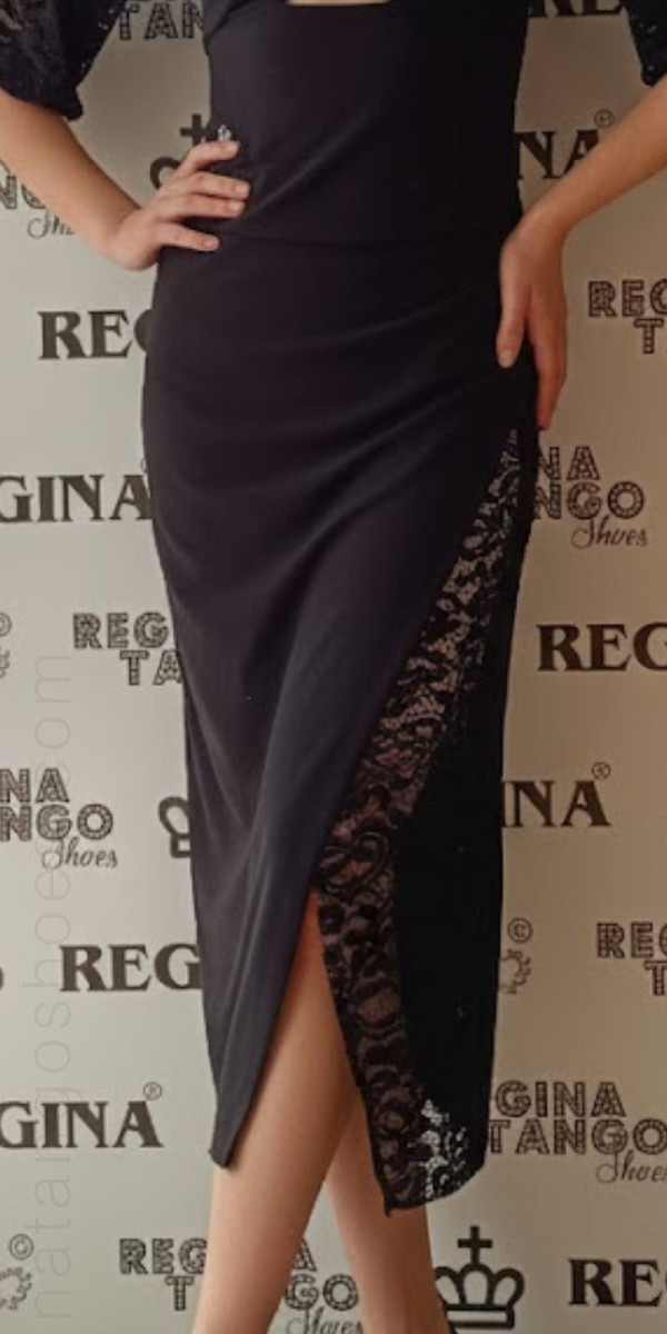 Io mi chiamo ''Ananas 16'', sono una gonna di vestibilità aderente realizzata in jersey nero e pizzo nero.