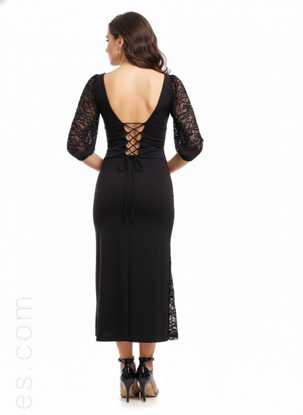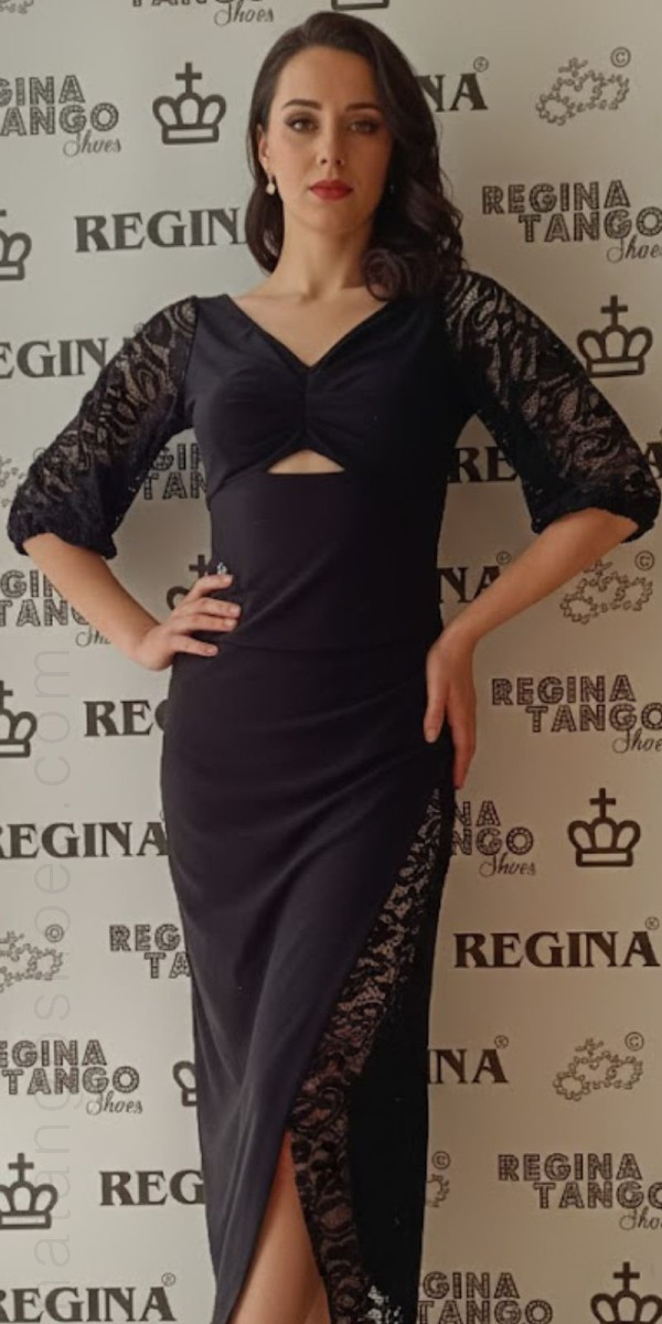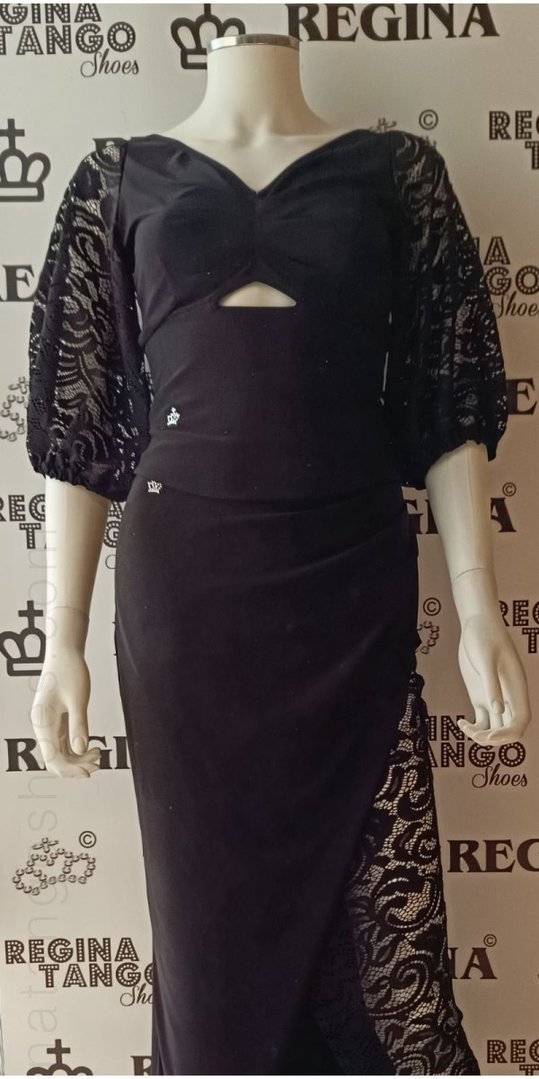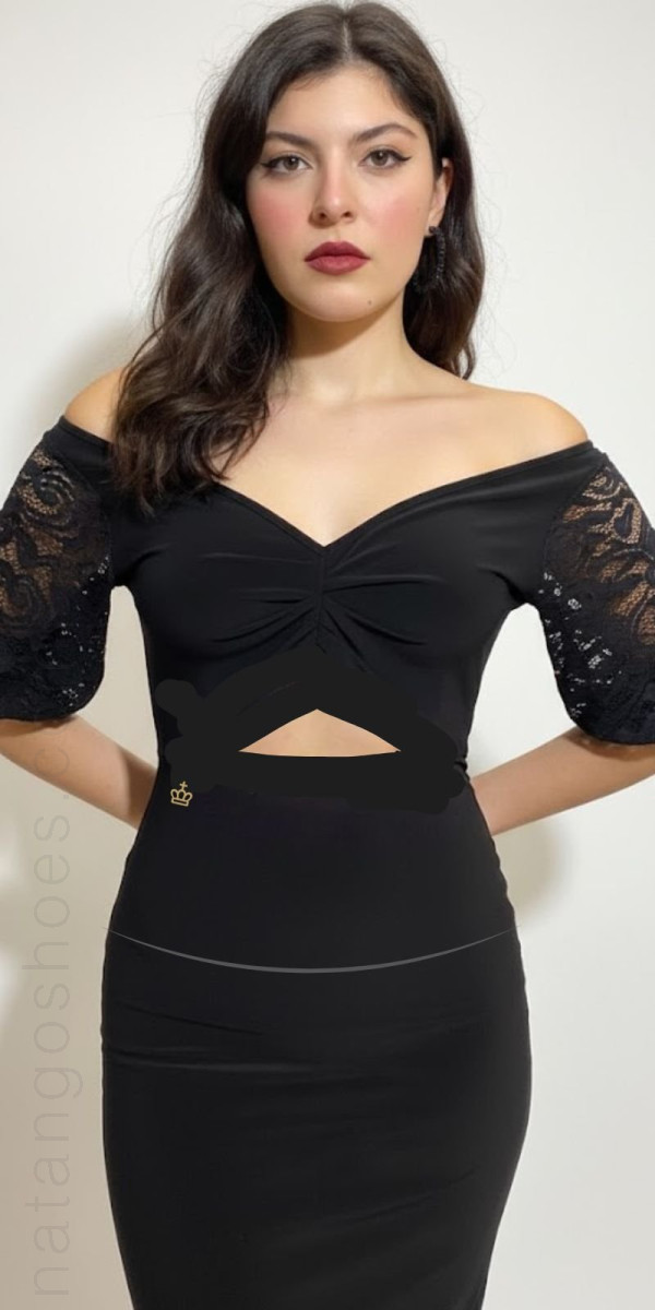 T-shirt realizzata in jersey elasticizzato nero e pizzo nero nelle maniche - Additional Information