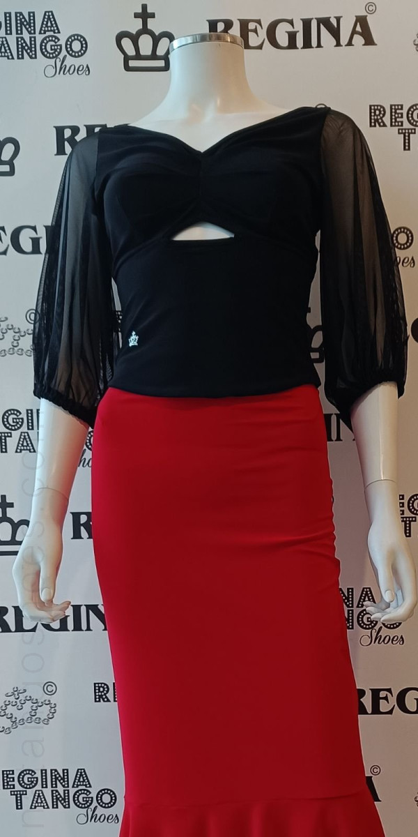 T-shirt realizzata in jersey elasticizzato nero e tulle nero nelle maniche - Additional Information