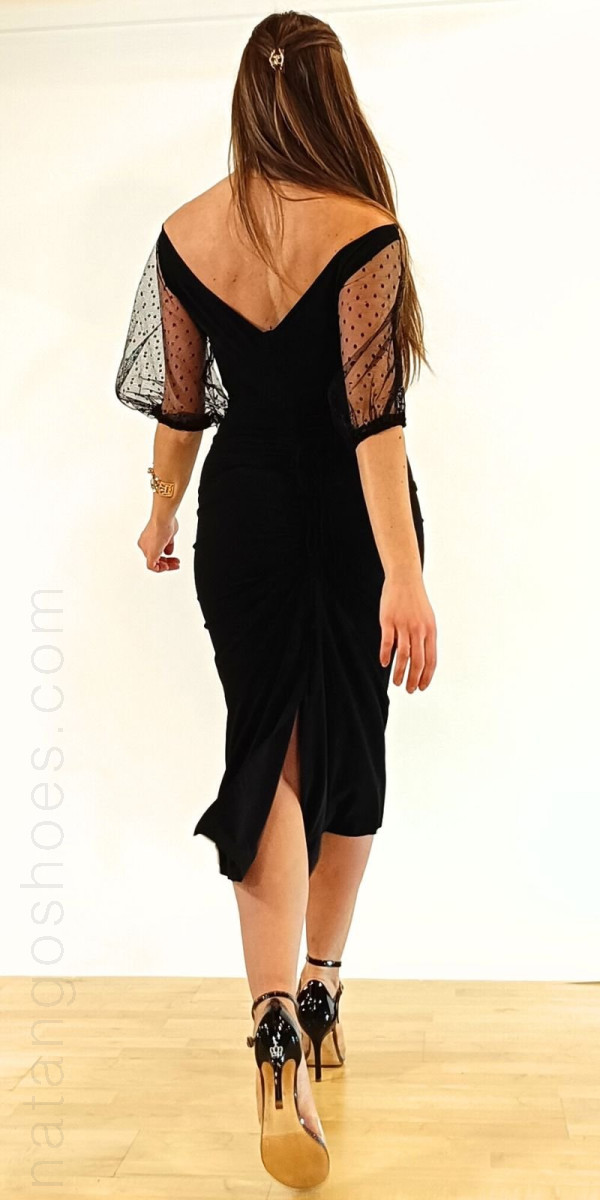 Abito realizzato in jersey elasticizzato nero e tulle a pois nelle maniche - Additional Information