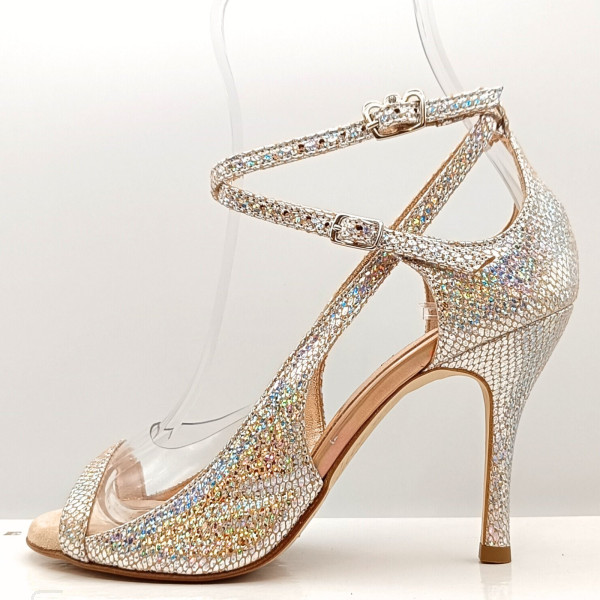 Attenzione: La suola nasce per il ballo, se desiderate utilizzarla lungo la strada fate attenzione alla pioggia.La scarpa sarà venduta completa di sottotacchi di riserva e di una borsa di raso stampata con due scomparti separati per non rovinare le scarpe, ottimo storage.