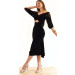 Abito realizzato in jersey elasticizzato nero e pizzo nero nelle maniche