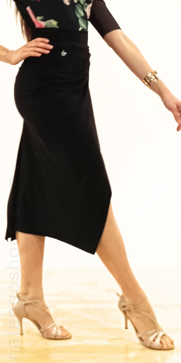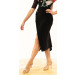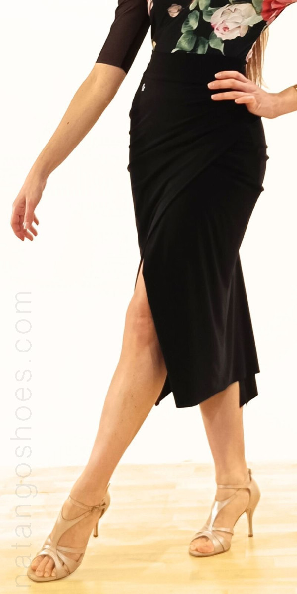 Io mi chiamo ''Nanà'', sono una gonna di vestibilità aderente realizzata in jersey nero. Nella parte davanti, uno strato di jersey si sovrappone all'altro, formando uno spacchettino nel centro davanti, un effetto davvero originale ed elegante! Nel centro dietro ho l'arricciatura.