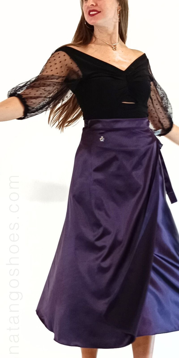 T-shirt realizzata in jersey elasticizzato nero e tulle a pois nelle maniche