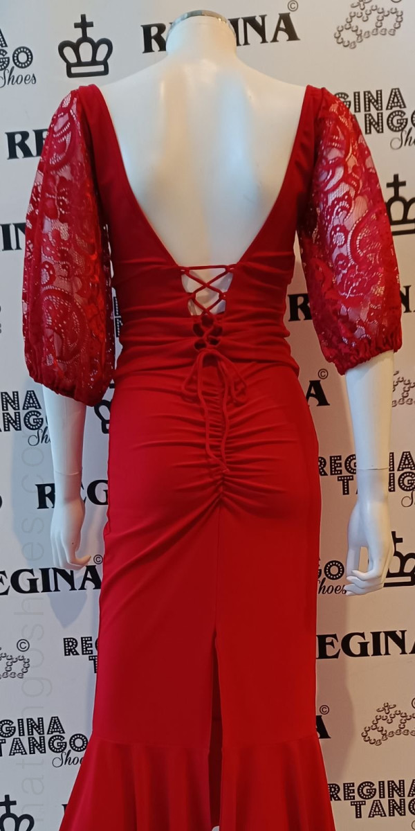 T-shirt realizzata in jersey elasticizzato rosso e pizzo rosso nelle maniche