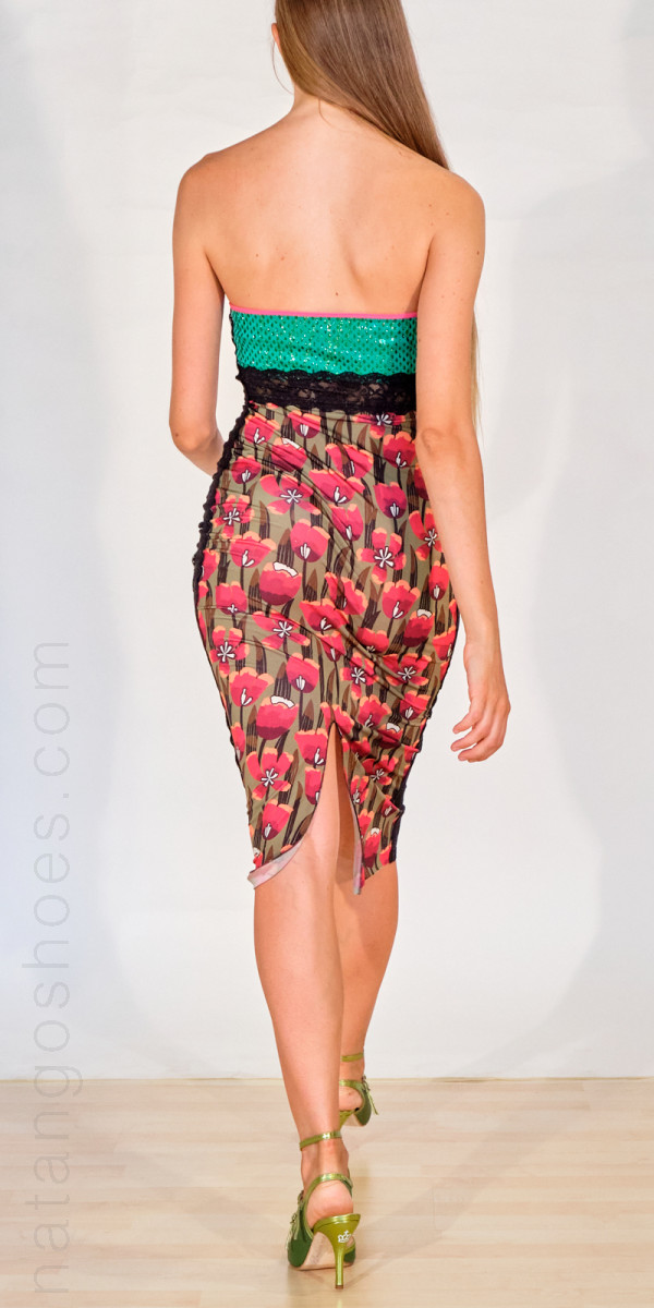 Io mi chiamo "Papaya 39" sono realizzato in jersey a fantasia con tulipani nella parte davanti e in rombi laminati verdi nella parte alta dietro. Ho un fascione che risalta il punto vita in pizzo come le rifiniture ai lati. Lo scollo, invece è rifinito con jersey. L'orlo è a taglio vivo. Rimango aderente al corpo, ciò mi rende molto sensuale ed elegante!! Realizzato con i migliori materiali italiani. Origine: Italia Stylist: Eva Natarja - Informazioni prodotto
