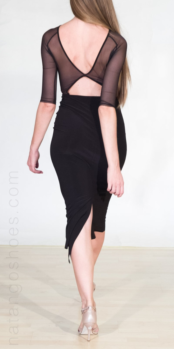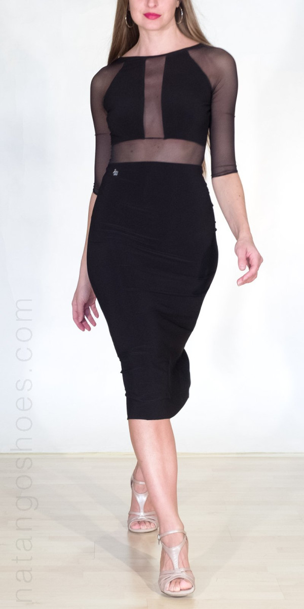 JERSEY NERO + TULLE NERO. Vestibilita' aderente.
