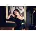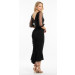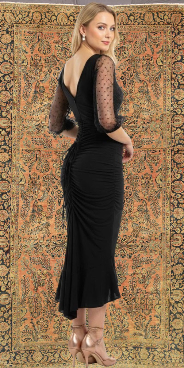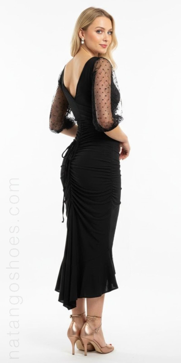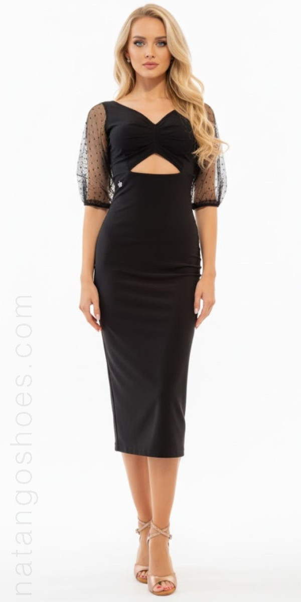 Abito realizzato in jersey elasticizzato nero e tulle a pois nelle maniche