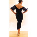 Abito realizzato in jersey blu scuro e pizzo blu nelle maniche