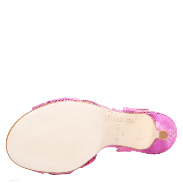 Questo modello Hollywood è realizzato interamente in morbidissimo camoscio fuxia stampato piccoli rombi laminati tono su tono.
