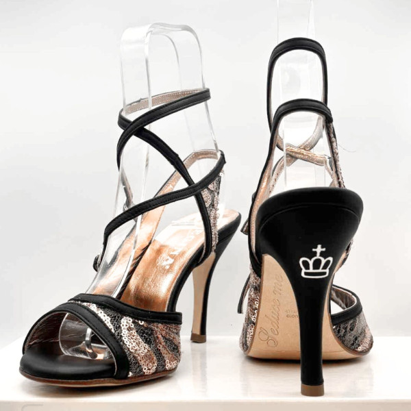 Avvolgente e sensuale, presenta un'allacciatura con doppia fibbia e doppio cinturino alla caviglia e la possibilità di farlo diventare semplice seguendo le istruzioni indicate nel nostro video.
