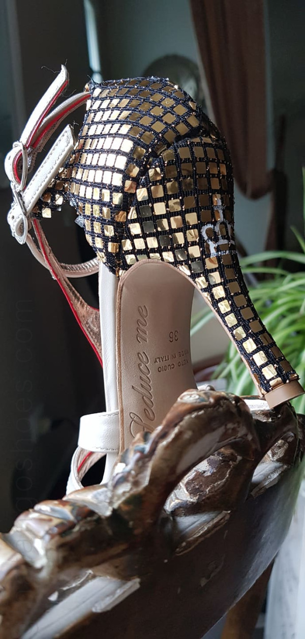 Attenzione: La suola nasce per il ballo, se desiderate utilizzarla lungo la strada fate attenzione alla pioggia.Il logo di REGINA® Tango Shoes, cioè la Coroncina impressa solo sul tacco sinistro è stato pensato per avere un effetto "TATTOO".